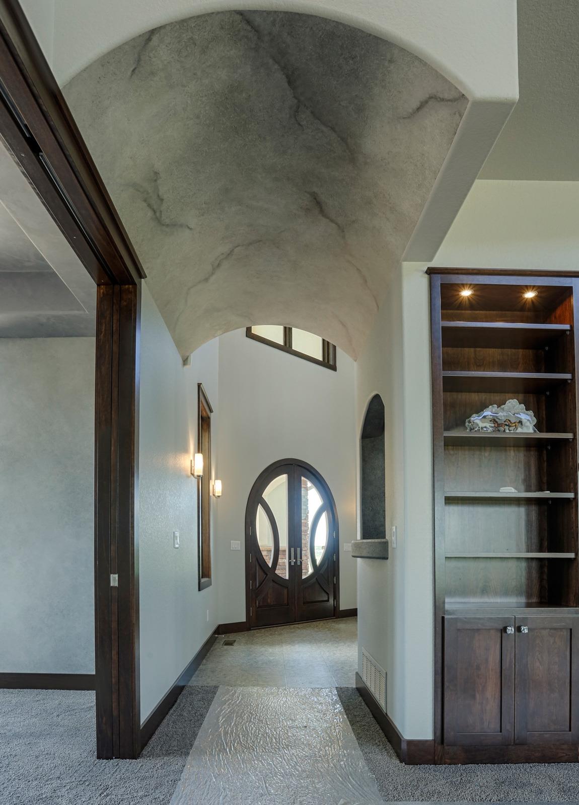 Home>Showcase Homes> Home #10 Home #10 Home #10 Home Features Dryvit with Cultured Stone Accent Spacious Outdoor Patio Grand Entryway Barrel Archway with Faux Paint Curved Staircase Custom Cherry Cabinetry Faux Painting Soffit Home Theater