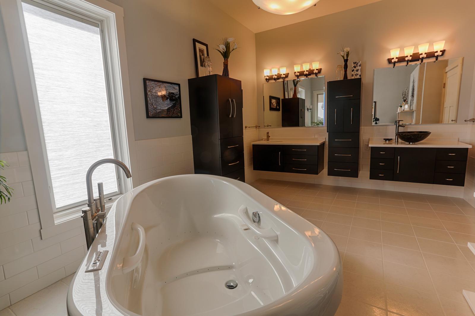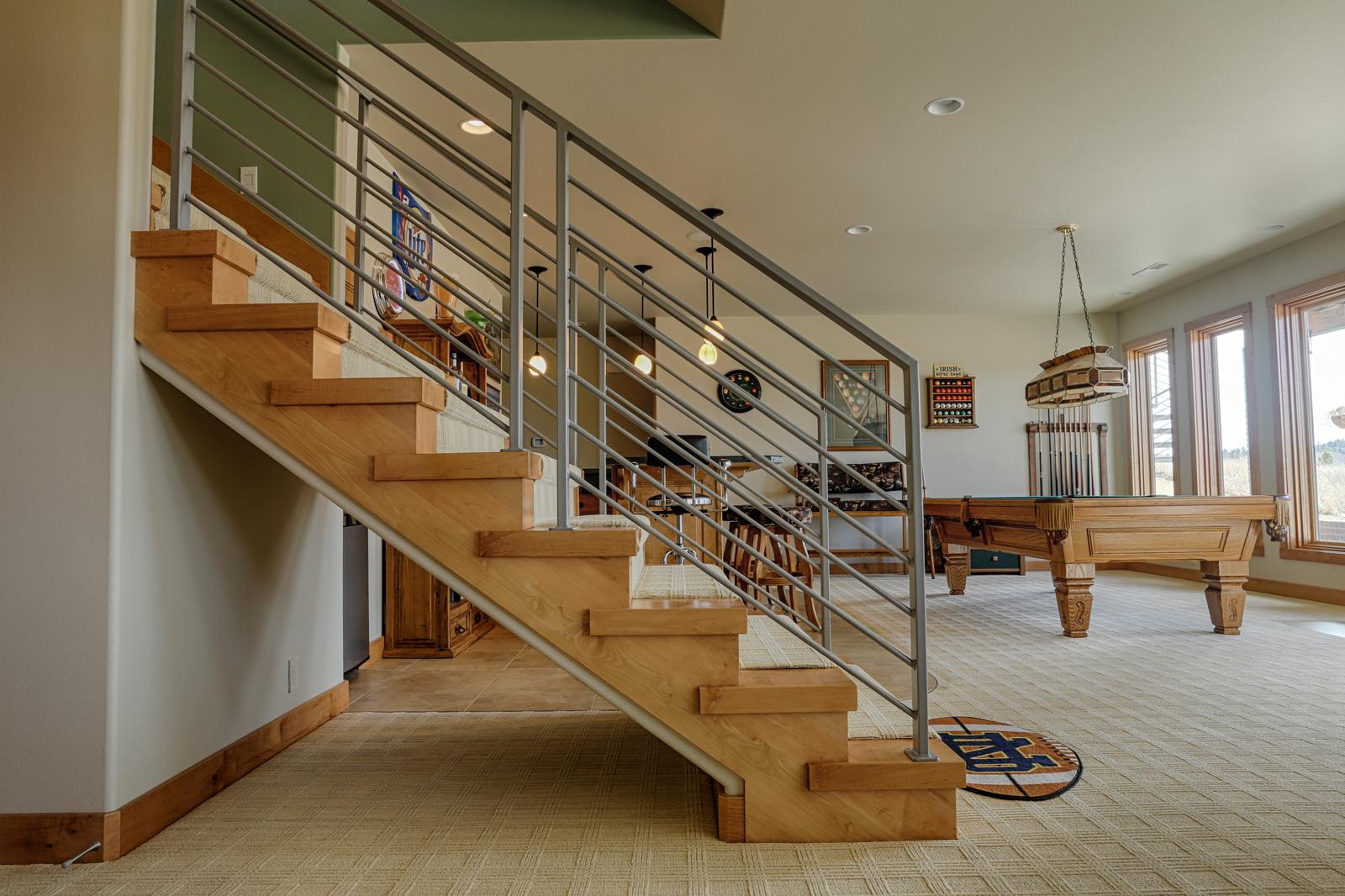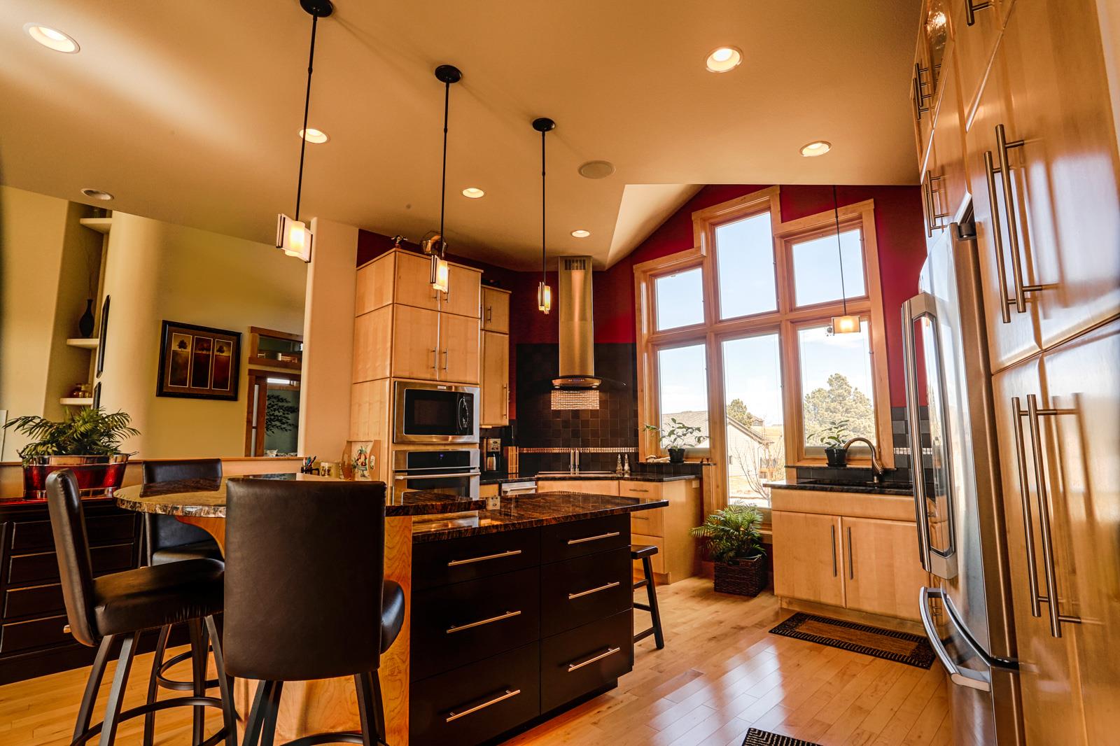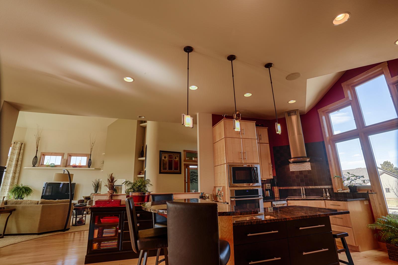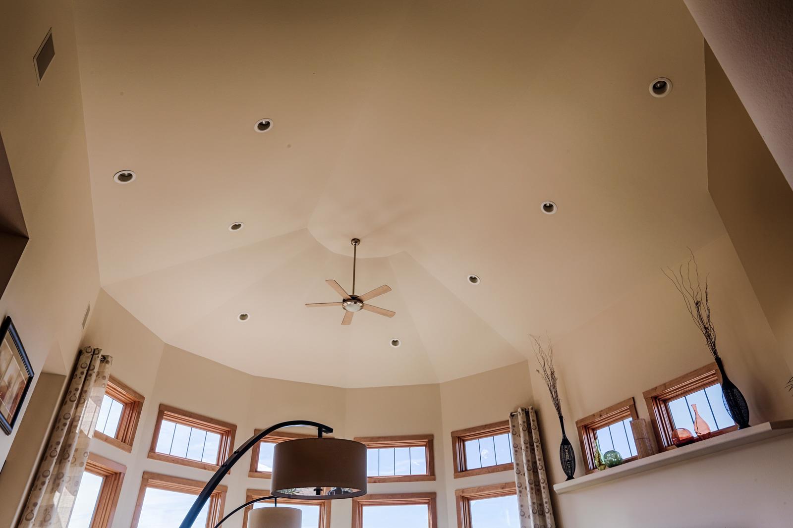 Home>Showcase Homes> Home #5 Home #5 Home #5 Home Features Brick Exterior Metal Spiral Railing off Back Deck Open Floor Plan Maple Cabinetry Custom Living Room Ceiling Unique Master Bath Spacious Open Family Room