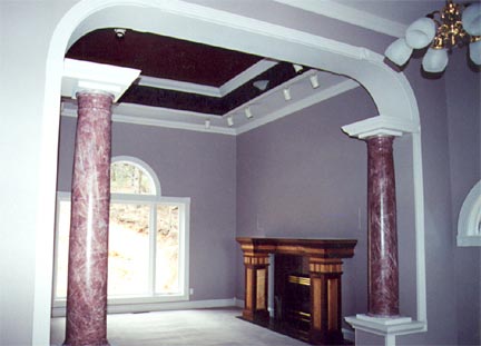 Home>Showcase Homes> Home #7 Home #7 Home #7 Home Features Brick exterior Concrete shingles Cooktop island in spacious kitchen Custom whirlpool Niche built into stairway Custom faux painted columns